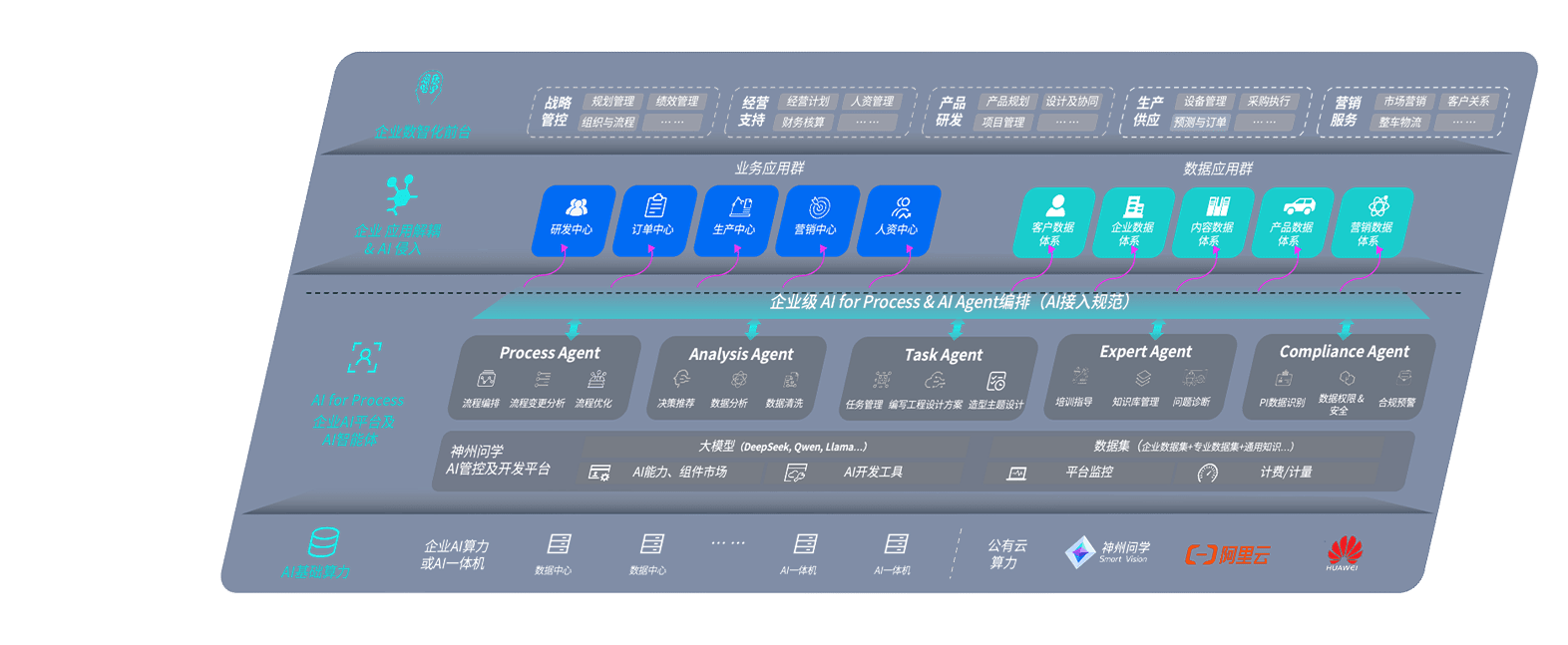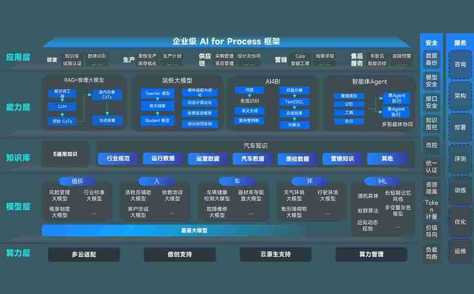 端到端的一站式AI工作空间深度融合了从企业战略规划到日常经营的全流程业务板块,,,,定向解决车企内部领域多、、、部门多、、、、链条长、、场景碎片化等难题,,,,支持车企快速构建以AI为核心的生产力写作体系,,,实现任务执行与AI能力的无缝集成与交互